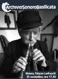 Giovedi 25 novembre 2010 ore 17.30 a Palazzo Lanfranchi verrà presentato il progetto per la costituzione dell’Archivio Sonoro delle Musiche di Tradizione della Basilicata, con sede a Potenza. Un progetto ambizioso destinato a restituire alle comunità di appartenenza documenti particolarmente rappresentativi delle proprie tradizioni musicali, facilitandone la consultazione a studiosi, appassionati e musicisti per un pieno recupero delle proprie radici culturali. La costituzione dell’Archivio Sonoro è progetto dell’associazione Altrosud, d’intesa con il Ministero dei Beni Culturali e la Regione Basilicata.