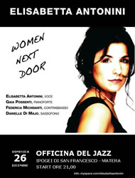 Domenica 26 dicembre ore 21.00, Ipogei di San Francesco - Matera.Women Next Door - Omaggio alla città e alle donne. Ingresso gratuito